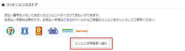 お支払い方法の一覧が表示されますので、「コンビニ決済画面へ進む」ボタンをクリックしてください。