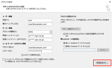 | セキュリティで保護されたパスワード認証(SPA)でのログオンが必要 | チェック 【なし】 |
